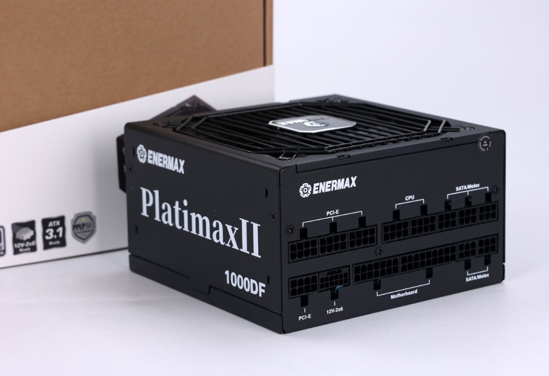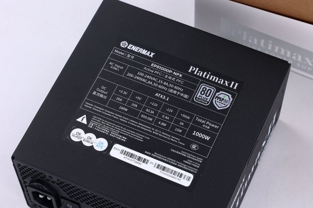 帶K的14代i7跟4080S顯卡的功耗需求不低,保守派估摸着850W完全夠用,但咱裝機習慣性留出餘量,而且堅決不買雜牌或者無牌。今兒主機選擇的同樣是安耐美的PlatimaxII 1000DF 白金牌全模組電源。牛皮紙盒外包裝+白色滑套設計外包裝,簡潔但質感在線。