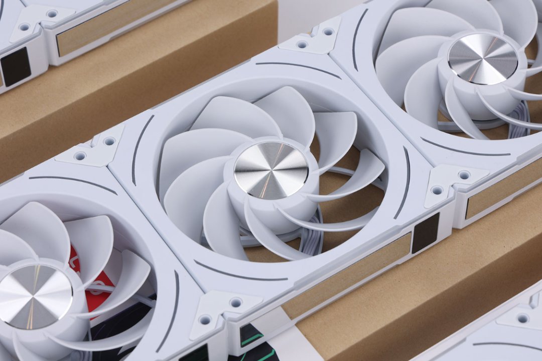 寒冰I360 水冷標配三把採用LDB軸承的白色ARGB風扇,同時也精簡了風扇線材設計,方便玩家理線。不過考慮到今天裝機風格的統一性,我們將風扇替換成了安耐美CL-30三聯裝正頁散熱風扇。
