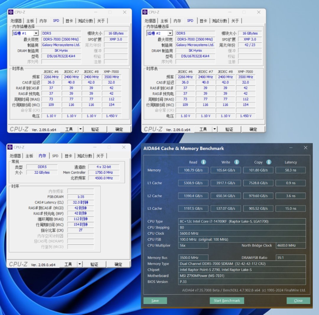 目前市場應該是已經看到了D5內存行情向下的趨勢,但也不是閉眼可選的行情。今兒裝機選擇的是海力士A-Die顆粒加持的HOF Pro D5-7000MHz 16G*2內存,性能夠頂,同時顏值也直接拉滿。