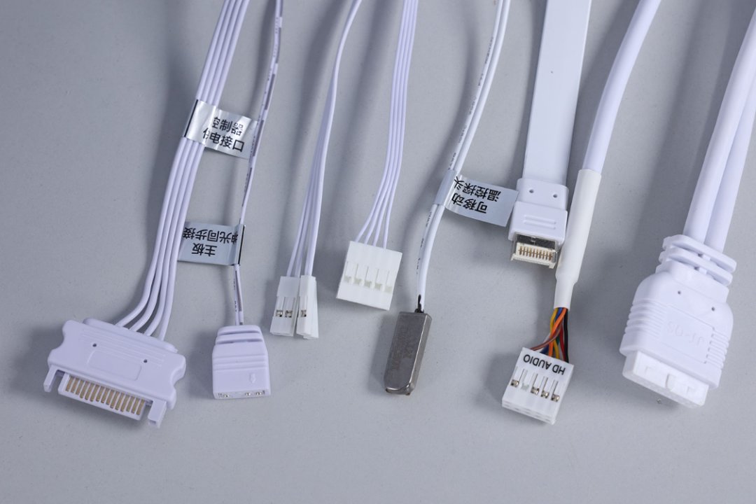 電源採用柔軟的壓紋線模組線材,方便玩家走線同時美觀度也拉滿。線材包含:1根24Pin主板供電線、2根4+4Pin處理器供電線、3根6+2Pin一分二PCIE供電線、1根12VHPWER顯卡供電線、1根大4D供電線、2根SATA供電線、1根外接220V電源供電線。同時也配備了電源固定螺絲和綁線紮帶。