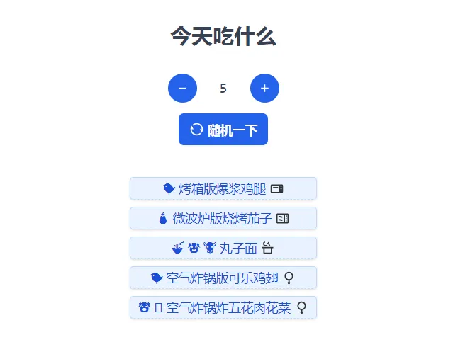 想更隨機一點,就在下方“喫什麼”裏隨機roll,就能出現幾款菜名供你選擇。