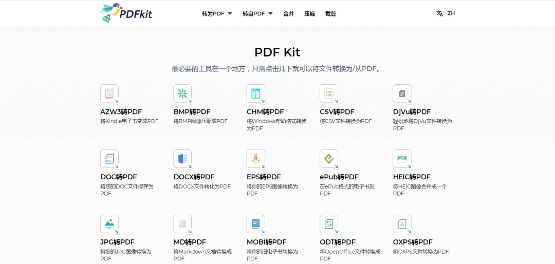 一個簡單純粹的PDF轉換工具網站,支持各種格式轉爲PDF,也支持PDF轉換爲各種格式。