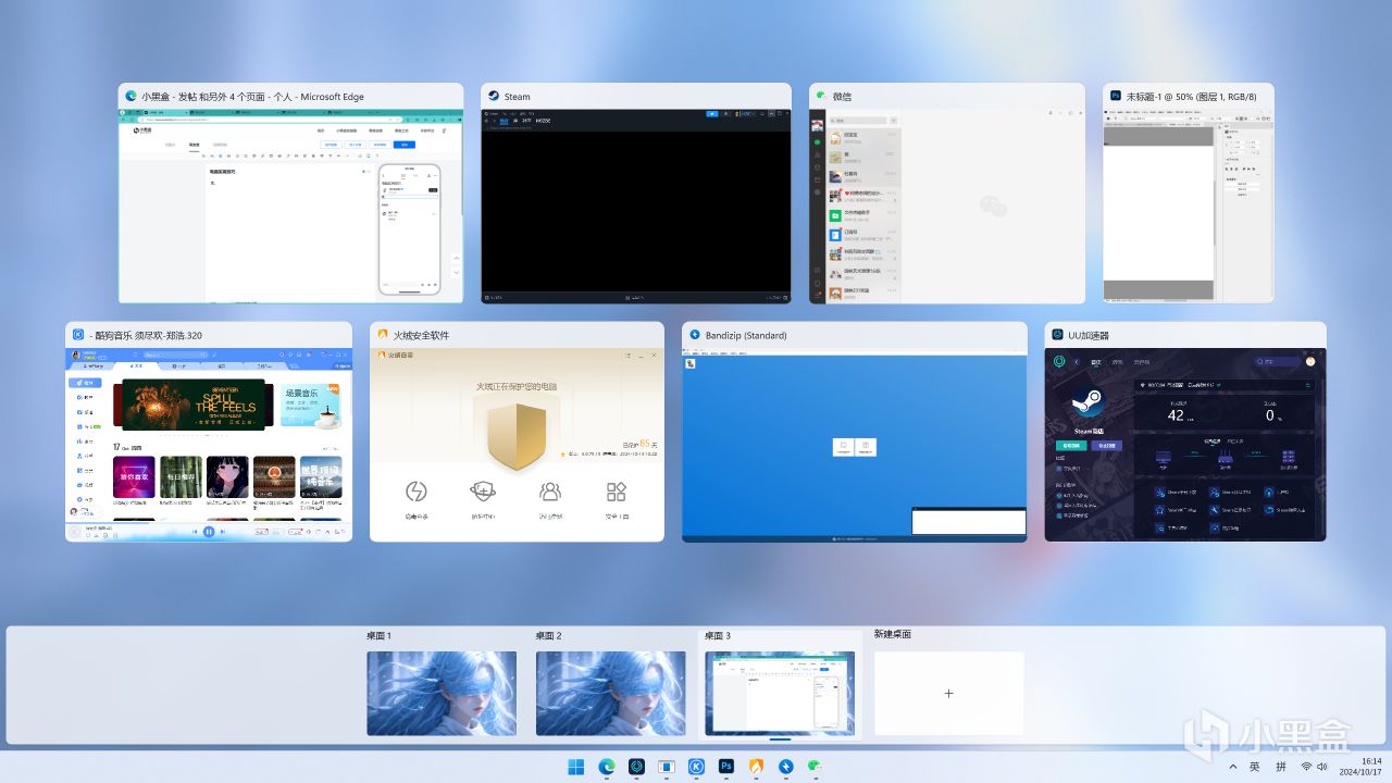 最下面一欄就是桌面1,桌面2,桌面3等等。上面就是你在某一個桌面所打開的軟件,可是分桌面使用,這樣可以互不干擾