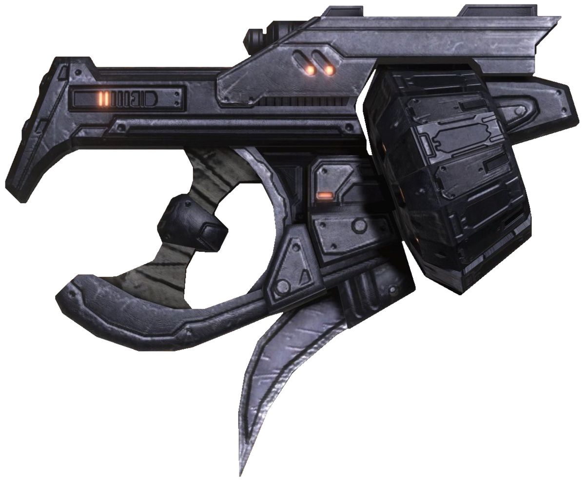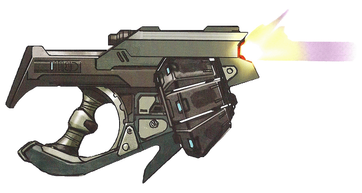 這種單手導氣式塹壕槍結合了轉輪手槍的靈活性和霰彈槍的破壞性,被基拉哈尼族歸類爲破襲手槍,但人類軍事學家則將其歸類爲手持式霰彈槍,而不是其他什麼東西。這款手槍用於在近距離持續射擊爆炸性槍彈,使目標喪失反擊能力,並給使用者拉近距離對目標施以最後一擊的機會。雖然它與人類的彈鼓霰彈槍比較類似,但對於基拉哈尼人來說,將其作爲一款大口徑手槍才更爲貼切。