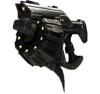 彈巢裝有5發形態粗糙的高溫7.9㎜金屬槍彈,這些槍彈在發射時似乎會碎裂,產生和人類霰彈槍類似的散射效果,可以造成驚人的毀傷性。此外,和大多基拉哈尼族武器一樣,武器底部配有鋒利刀片,可以作爲強大的近戰武器輕易刺穿敵人的護甲,對敵人造成巨大的身體創傷。基拉哈尼戰士主要將獵槍作爲近距離武器,來輔助自己更爲傳統的釘槍和等離子步槍。