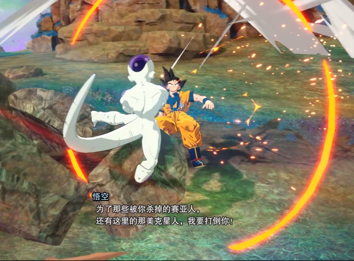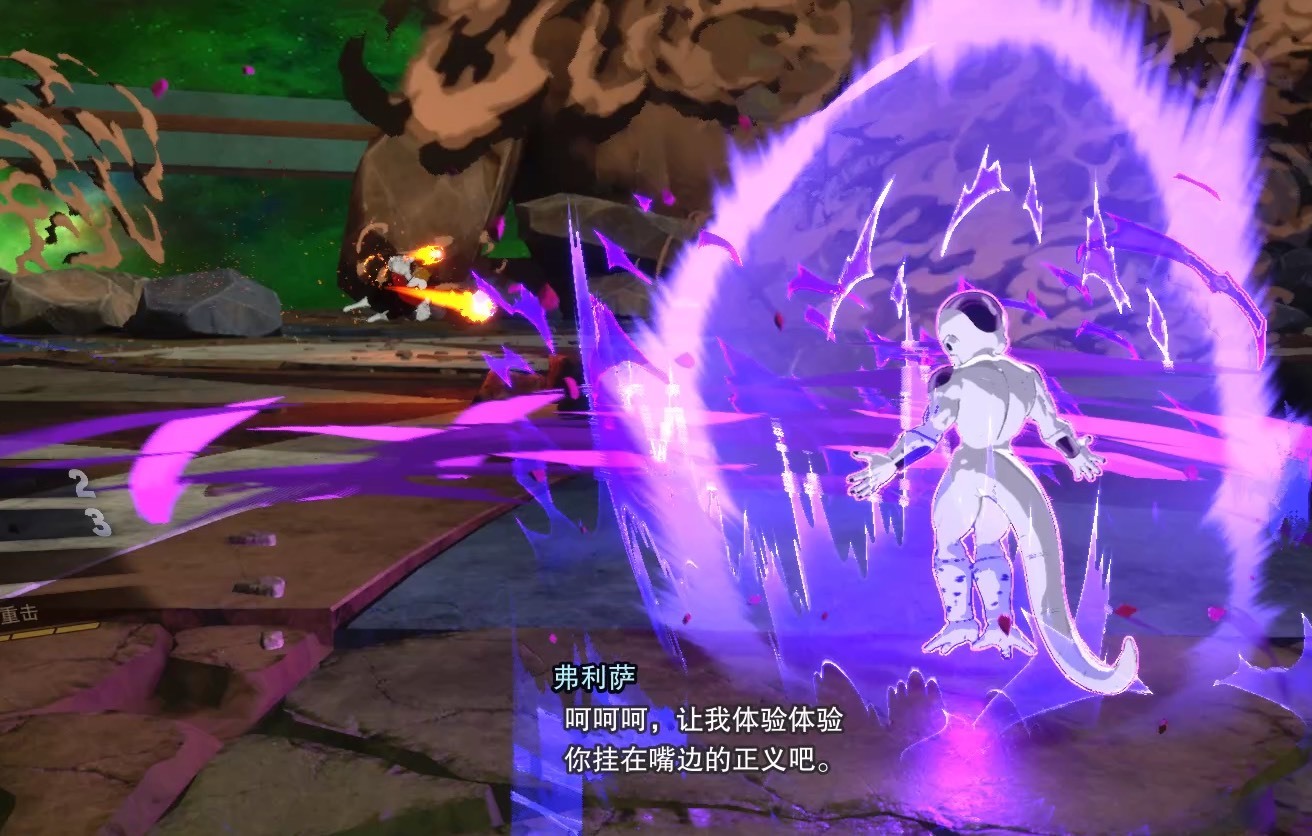 大招終結有個好處,即使到時間了,弗利沙也說不出受不了了我要毀掉這個星球這樣的話,只要沒有這話,比克不會鎖🩸,悟空就氣急敗壞上來了,因爲咱弗大帝傷害可是有的,直接2技能———你太狂妄了,直接到sparking