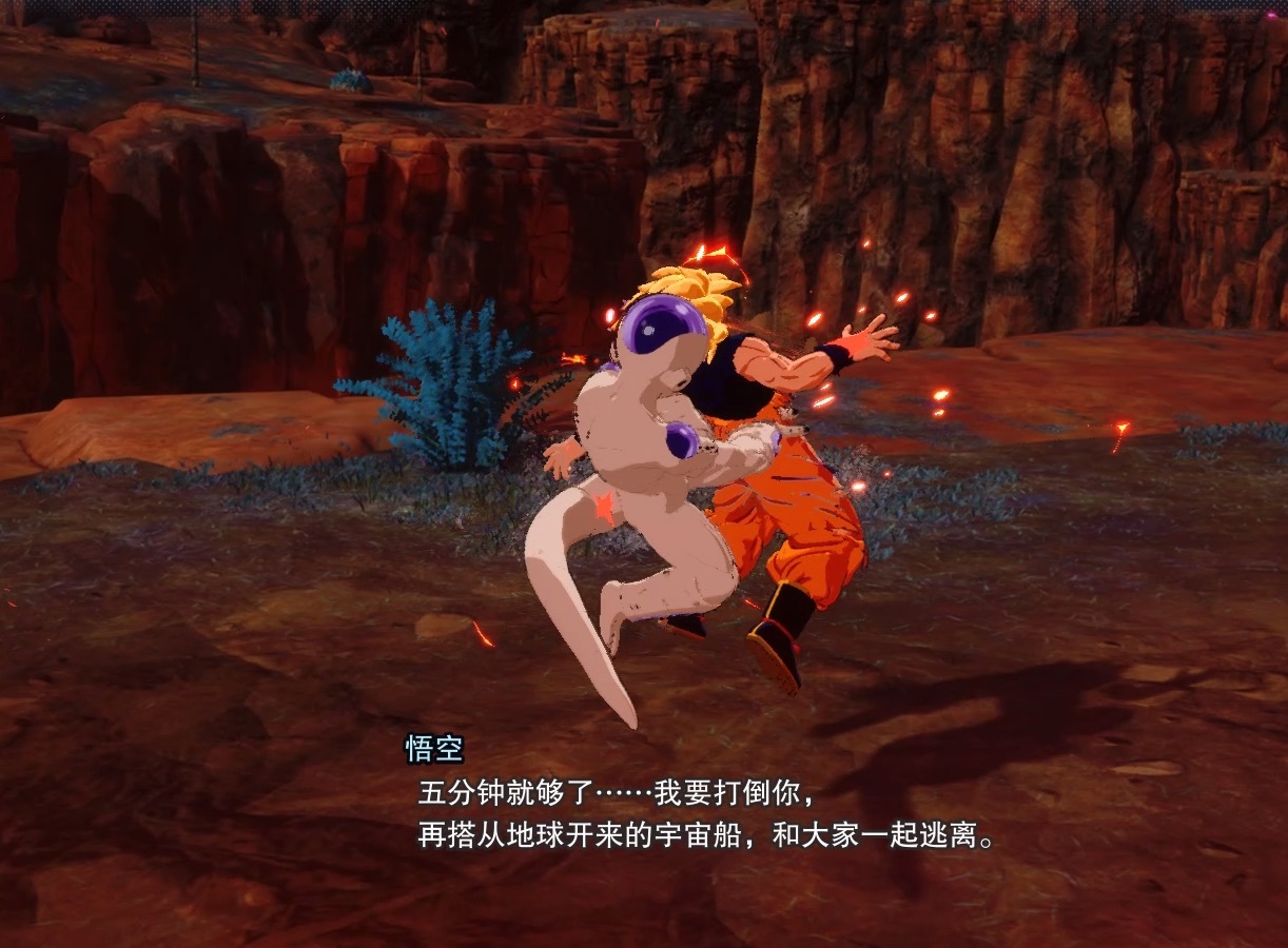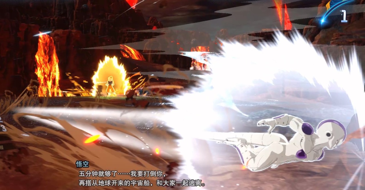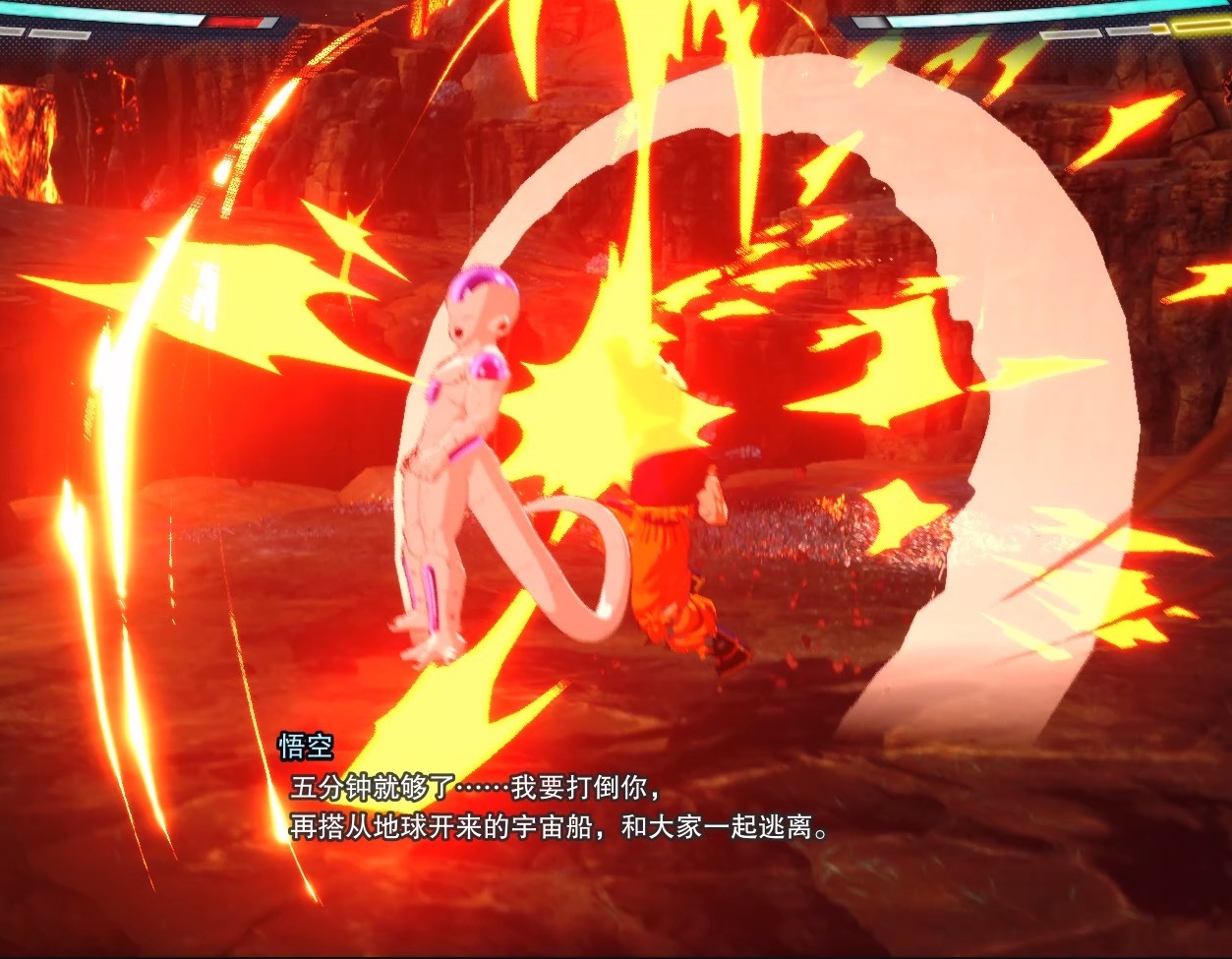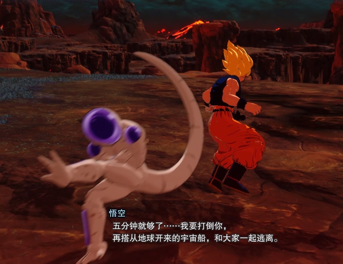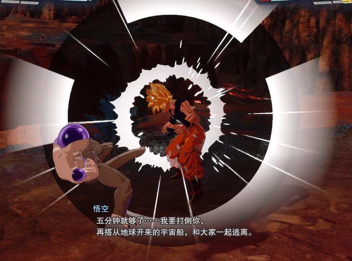 差不多1:40s內解決悟空,大王就不會變身,會說:哈哈哈是我贏了的話。稍微多點,多到1:47  8s那樣,弗大帝開始逼逼,我要使出全力做個了結,所以如果聽到這句話咱就可以重開了,也有可能打的快沒碰到這句話,直接if,那這裏咱就直接簡述一下這兩種情況打法