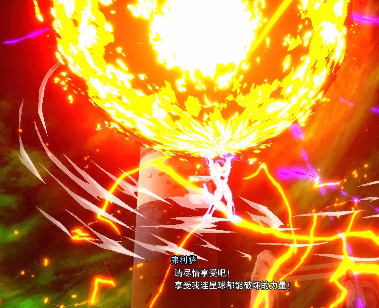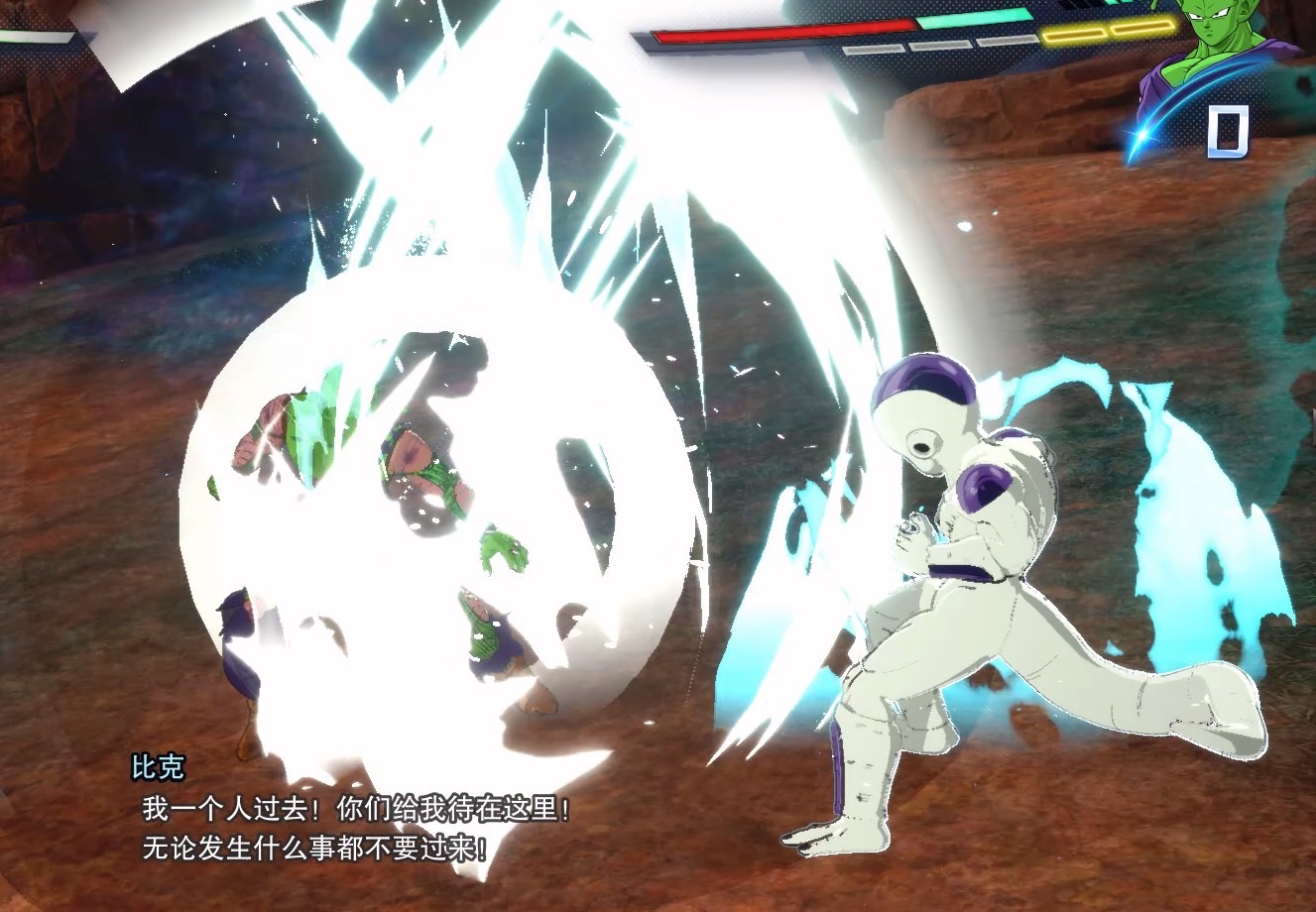爲什麼咱這裏選擇不用最終大招,因爲弗利沙篇裏要求時間更短,大招動畫時間太長了(也算時間內,不像別的一些遊戲大招時間靜止),要是能一錘定音,直接大招就行了,不能,集氣集到sparking還得需要時間。弗利沙篇可以這麼弄,比克篇的話比克技能傷害低,也就還是大招流吧。(人家弗利沙小技能跟比克魔貫光殺炮傷害差不多