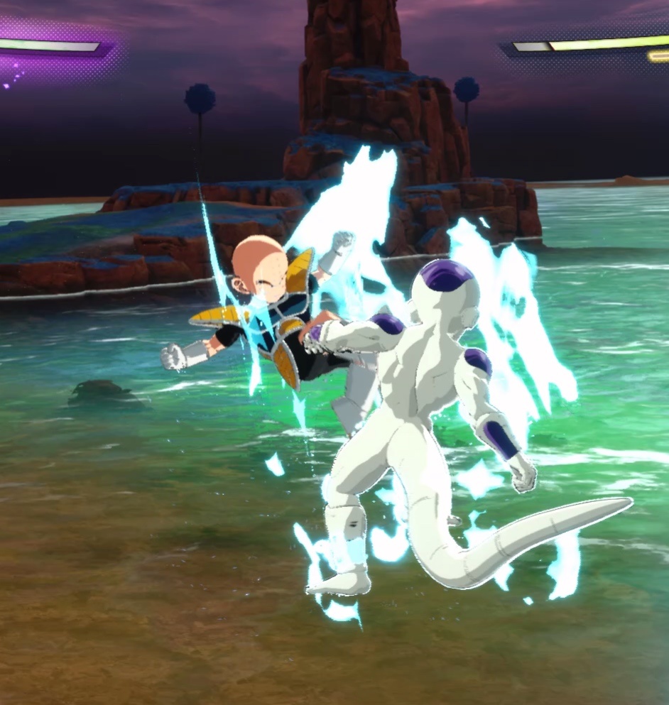 完事還有一點就是就這個位置的弗利沙在sparking期間酷酷A,打一會兒之後自己跑偏了,這不應該都是追着敵人打?他這隻打直線,跟.......純直線一樣?沒有碰撞體,平地幹跑偏?也是醉了,只能再閃回來,但是敵人也閃啊,這就浪費時間了,這個關卡反正發現好多bug,別的關沒發現啥