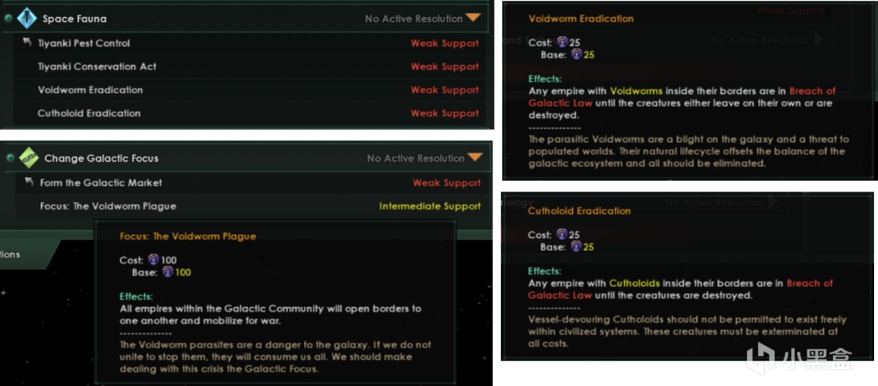 太空兽群:星海共同体对太空生物持谨慎态度,支持缇扬奇害兽管制、保护法及虚空虫、岩居兽的根除计划。