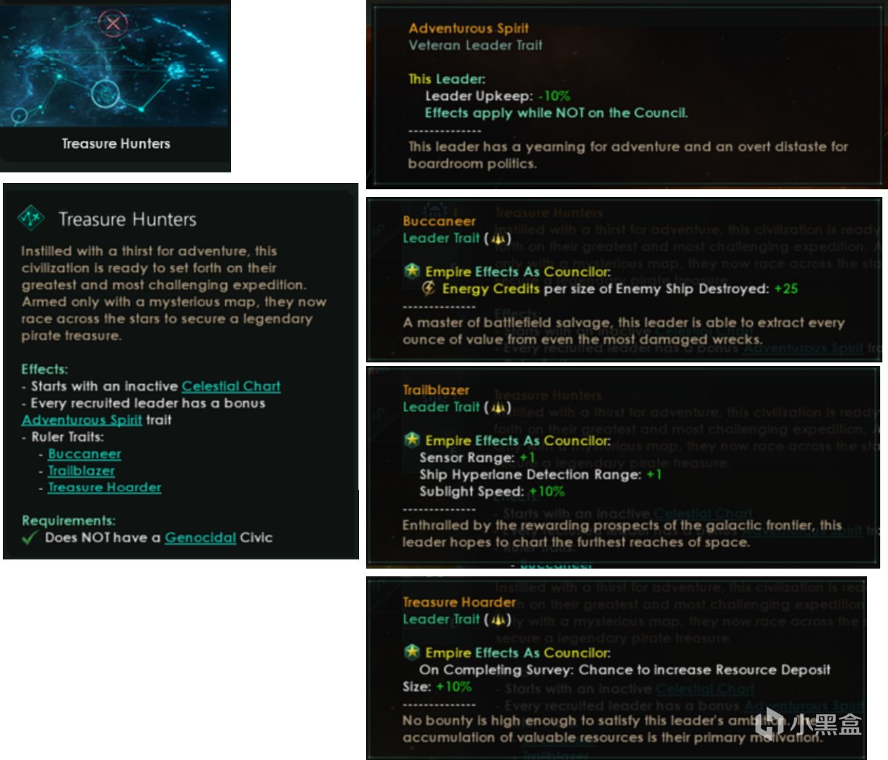 效果:游戏开始时获得未激活的星际图,招募的领袖拥有冒险精神特质。