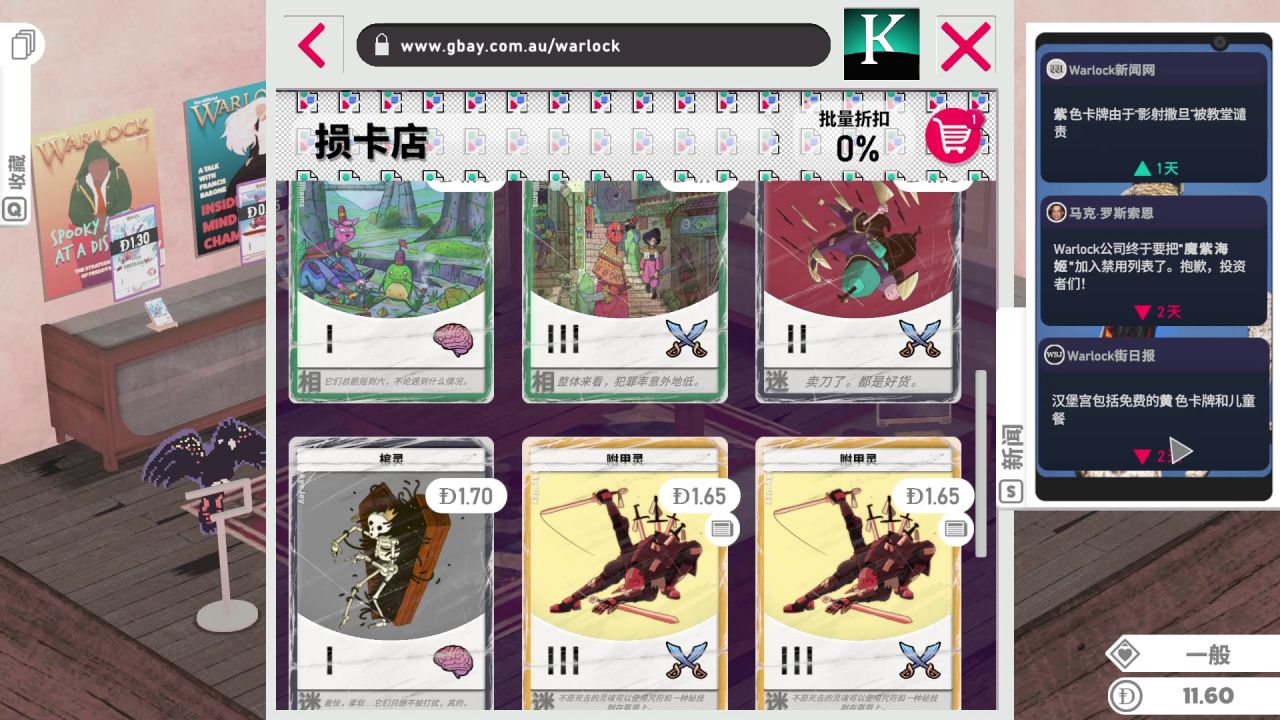 我們擁有卡牌時可以選擇售賣(右鍵快速擺放