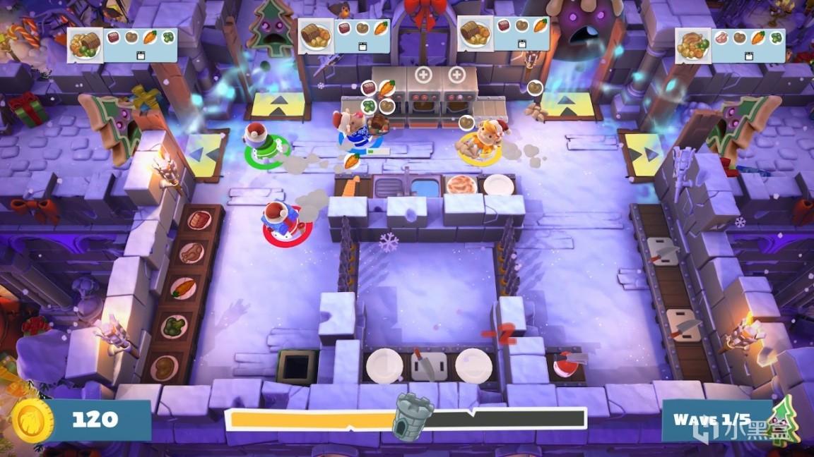 胡闹厨房又叫分手厨房,为什么嘞,毕竟玩着玩着就打起来了(然后可以控制的角色有一个飙脏话的表情)不管是兄弟姐妹还是情侣都遭不住在同一关停留过长的时间,游戏是小关卡制的,每每要进入下一个大关卡之前需要足够的星星才能通往下一关,游戏可本地可联机,最多支持四人游玩现在有很多主题关卡(需要购买dlc)每个主题做需要做的食材都不一样(我已经跟着大佬的队伍4星通关了)