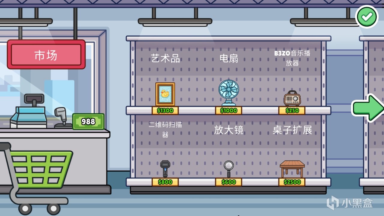 游戏中的时间是按照天来划分的,每天过后就可以使用赚到的消费购买特殊道具增强体验了,比如能延长顾客耐心的风扇、能容纳更多物品的桌子、能一键呼叫顾客的二维码扫描器等。
