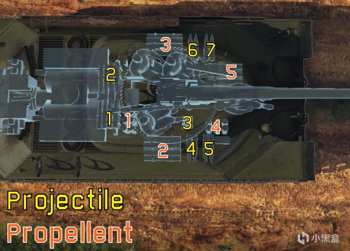 战争雷霆的is-6的弹药架分布图,黄色的是杀伤部,也就是炮弹;红色的是发射部,也就是底火。