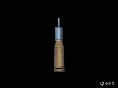 我们先忽略下面那部分,首先看上面,炮弹的发射部里面填充满了火药,在撞针击打弹体后里面的火药就会爆炸,推动前面的发射部,发射炮弹。