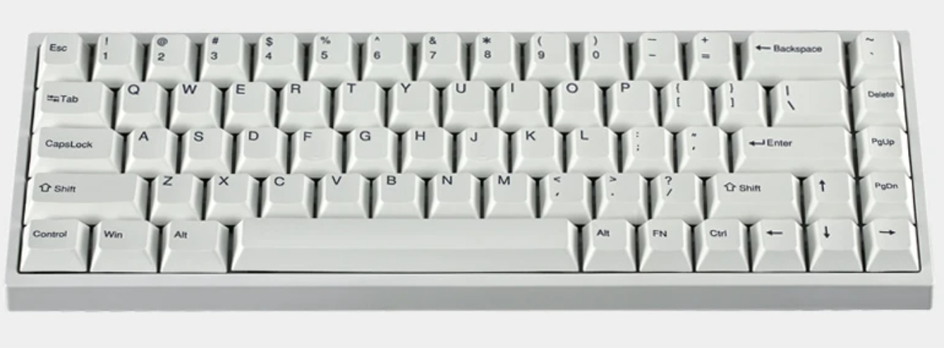 一般为 68 键位,在 75% 尺寸基础上又砍掉了键盘最上一排的F功能键,要实现对应功能需借助 Fn 加上对应的数字键。