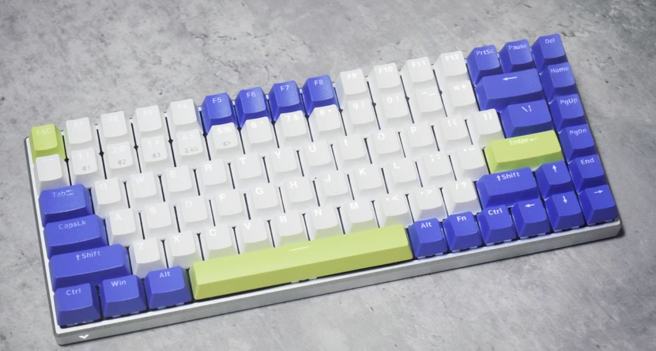 在这里说说84键,其在87键基础上,去除了截图键、暂停键等,对按键进行更加紧凑化的设计处理,一般会把方向键位上的空白区域取消,然后融入到整体键位之中。