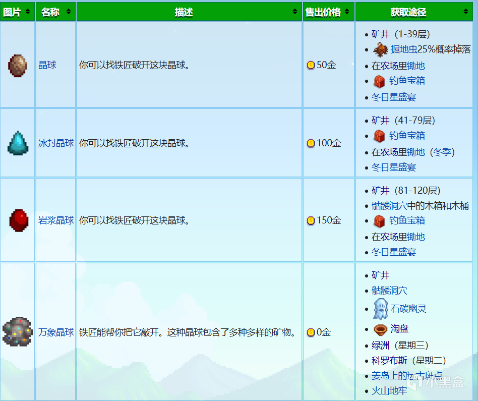 除了遠古斑點獲取古物,我們還可以通過晶球來獲取大量的可捐贈礦物,這些礦物的描述都是“把它們捐贈給博物館,你會從岡瑟那裏得知更多信息”,晶球可以找鐵匠或者用晶球破開器打開,推薦找鐵匠,破開器需要一個遊戲時才能開一個晶球