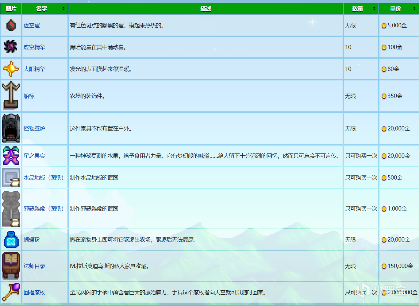 第二年開始木匠家木材單價上升爲50金,而鐵匠鋪煤炭售價爲250金所以推薦用自己砍伐木材燒製或者鐵匠鋪購買來穩定大量獲取