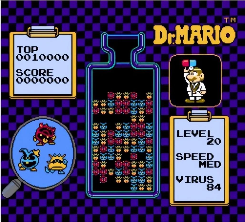 上世紀八十年代末期,《俄羅斯方塊》的火熱流行,讓人們看到了消除類益智遊戲的巨大魅力,任天堂自然也不會錯過,一邊全力爭奪《俄羅斯方塊》的正式版權,另一邊也在打造屬於自己的全新作品。《馬力歐醫生》雖然在FC生涯末期纔出現,但憑藉簡單的規則迅速吸引了大批玩家,本作給人留下最深刻的印象,莫過於背景音樂,輕鬆愉快的風格中充滿了挑戰,幾首經典曲目讓人沉浸其中不能自拔,多年之後在任天堂官方音樂會上還能聽到交響樂演奏。這個玩法之後在多代主機上均有續作推出,已經成爲任天堂不可或缺的王牌之一。