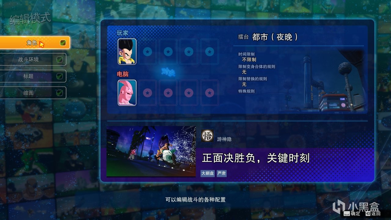 “電光0”還能自己DIY場景,讓劇情中沒交集或沒對戰過的不同角色對戰,很多角色間有着不同的對話,用180名角色,設計不同對話與場景,構建自己的故事。而這些個人覺得都是製作組再讓玩家熟悉或者適應對戰,本作的難度初上手不低,比如最初的打貝吉塔大猩猩模式,AI的讀指令防禦、閃避、彈反,還有較高的韌性,讓戰鬥的體驗並不爽快,加上打擊感並沒有像其他漫改那樣有強烈反饋,劇情模式的挫敗感就不小。但這其實是你不熟悉攻擊方式,你需要熟悉攻擊機制才能熟練對戰,而不是上去“噠噠噠噠”地亂打、放大、過關、看劇情。