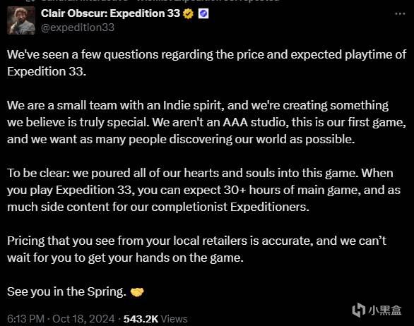 根據開發商X上發佈的內容,《光與影:33號遠征隊》將提供玩家長達30小時以上的遊玩流程。官方表示,作爲一個獨立小工作室,首發遊戲在體量上或許無法與3A級別齊平。但從目前公佈的實機演示來看,將回合制和動作遊戲中的閃避機制相結合,搭配各類QTE獎勵觸發,相信會吸引更多原本不喜歡回合制的玩家考慮入手