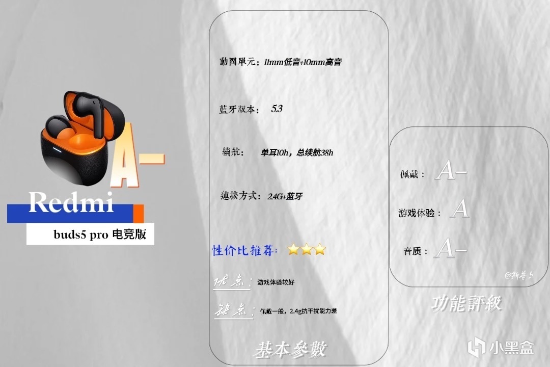 红米buds5 pro电竞版:459rmb||性价比推荐:★★★
