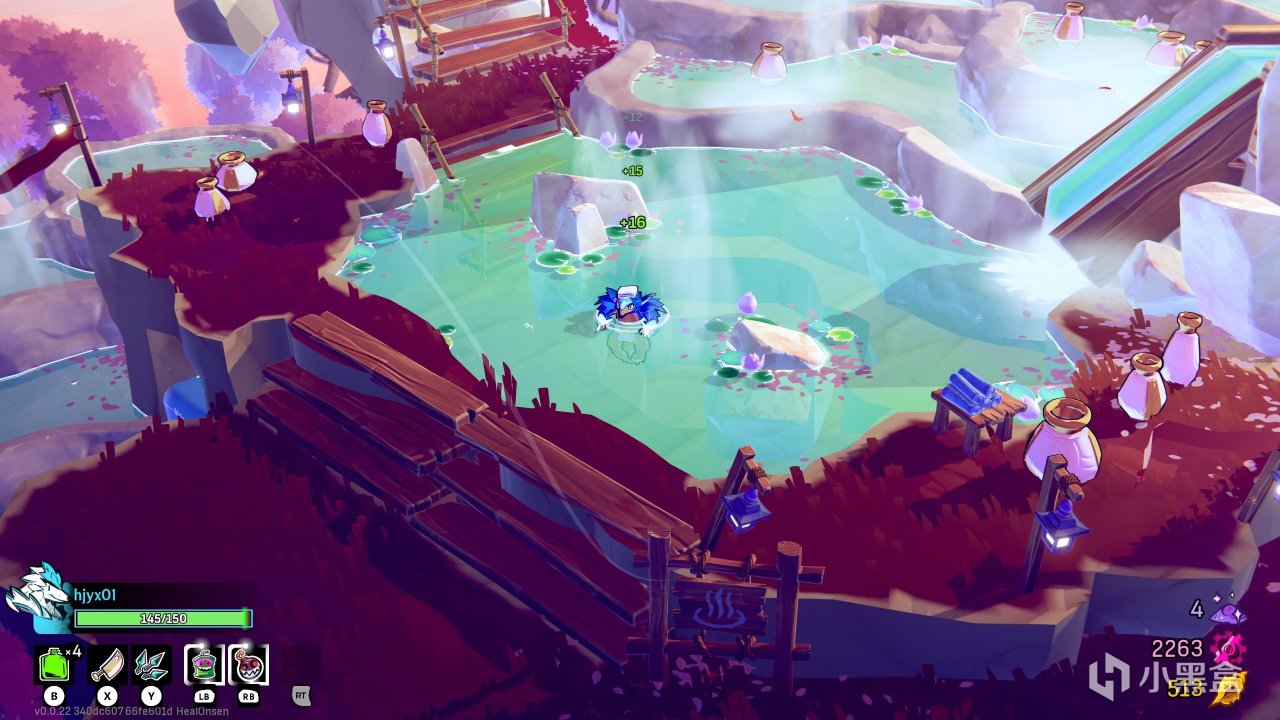 此外游戏存在的特色战斗系统是“武器切换”——需要你用一种武器打完轻攻击combo之后按另一种武器的按键,那么问题来了:一把武器的combo打完都勉强,还要打出“切换武器”,你付出的代价往往就是扣血(切出来的那一下倒是有无敌帧,但是必须打完前面一套,中期开始精英BOSS人均多动症),而本作的回血十分的难得,在游戏存在非常多局外养成内容的前提下,几乎没有任何问题的回血手段(作为对比,《哈迪斯》或者其他类哈迪斯游戏一般会设定进房间少量回血)。