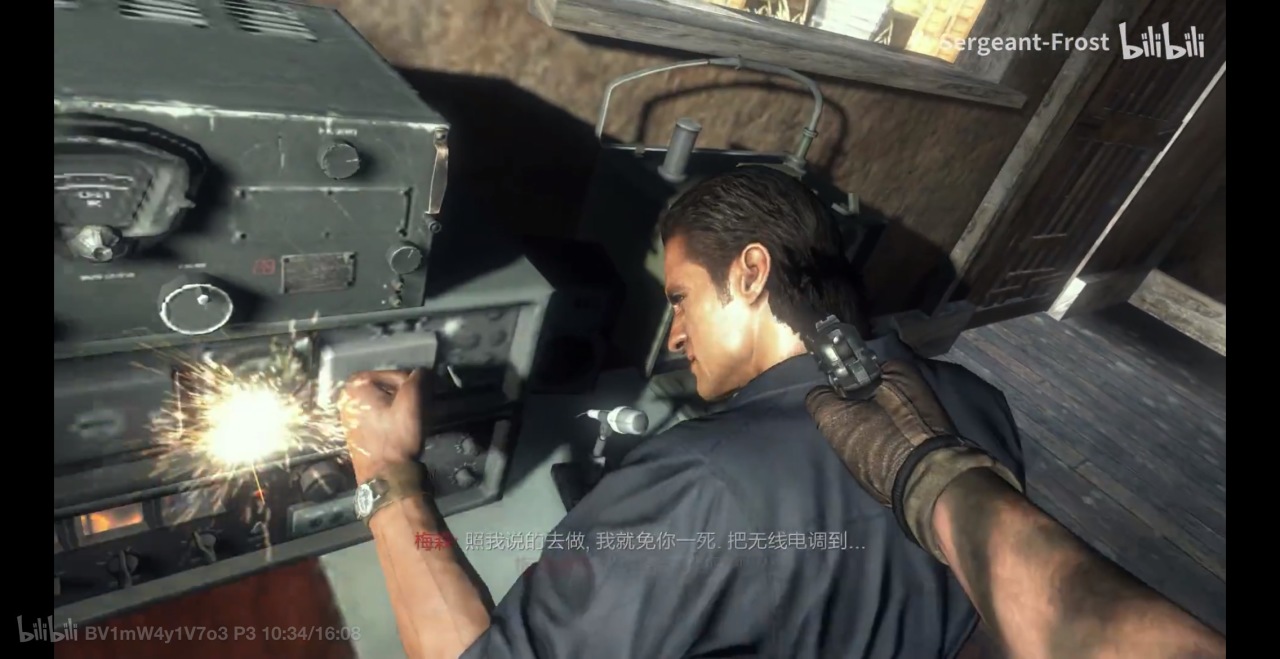 梅森一行人在附近寻找电台以寻求救援,梅森寻找电台时正巧碰见了梅南德斯在跟克拉夫琴科联系,本想使用电台请求支援,但电台被梅南德斯一拳打爆,并吸引了将近半个村的士兵。