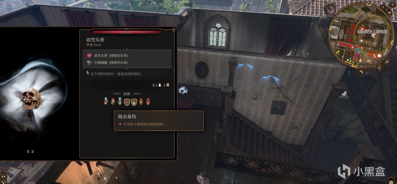 1062.进门楼梯可见到多个骷髅,弱点光耀伤害,影心光弹即可!或者钝击投掷!