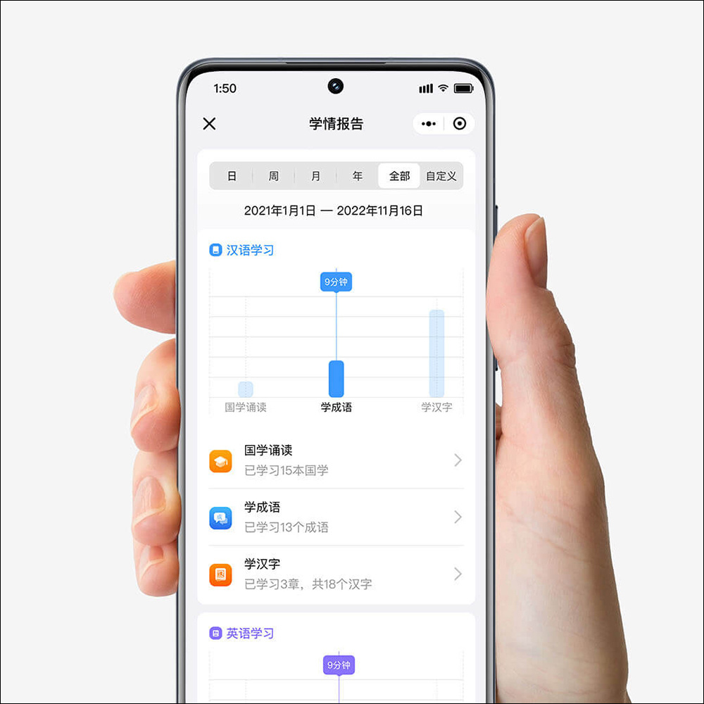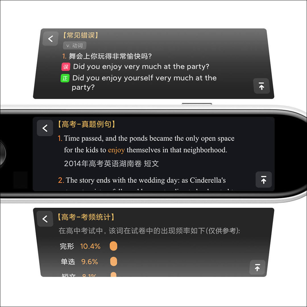 米家辞典笔也支持标准的英式或美式发音播放,帮助英语学习者可独立完成听写练习。