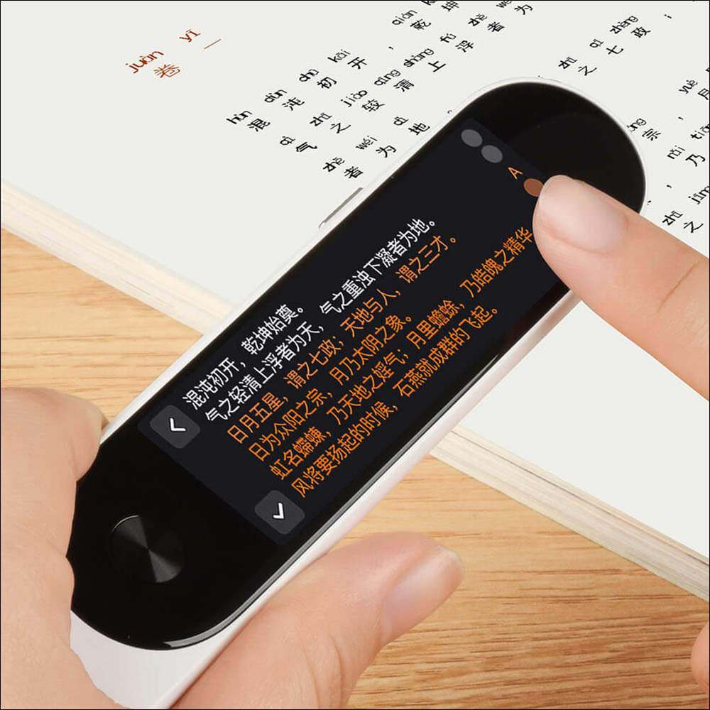 米家辞典笔使用方式相当简单,只需像是握着手写笔一样扫过想翻译、查找或朗读的文本段落,即可查找到相关字词、句型。