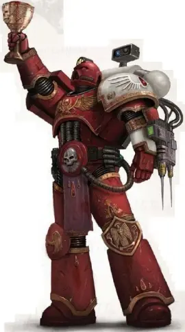 聖血衛隊是原體以及戰團長的近衛隊,他們身披金甲背有雙翼,因爲其地位特殊所以傷亡率極高。