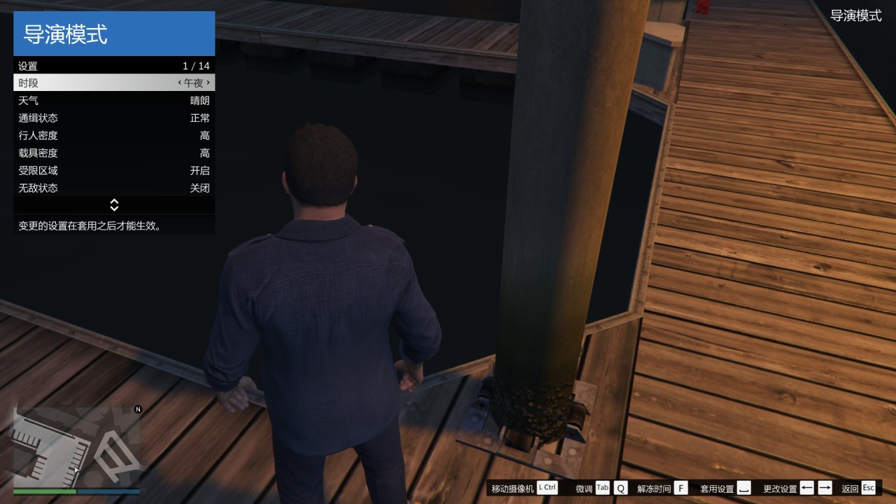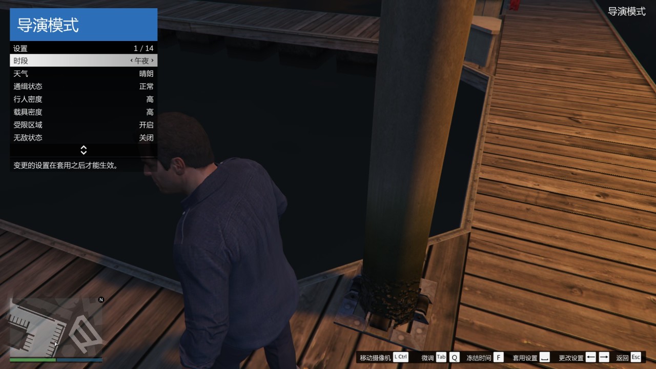 进入导演模式后,可以操作游戏角色后,按M打开菜单