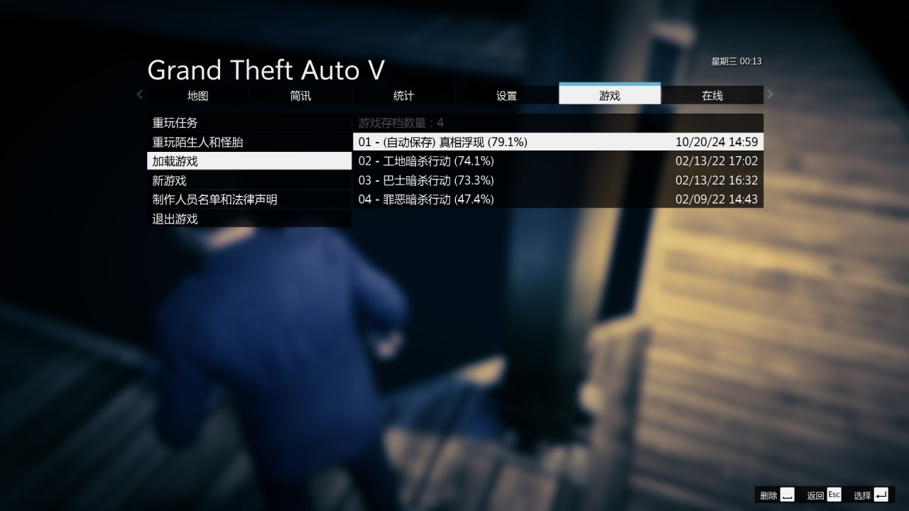 直接按P,游戏-加载游戏