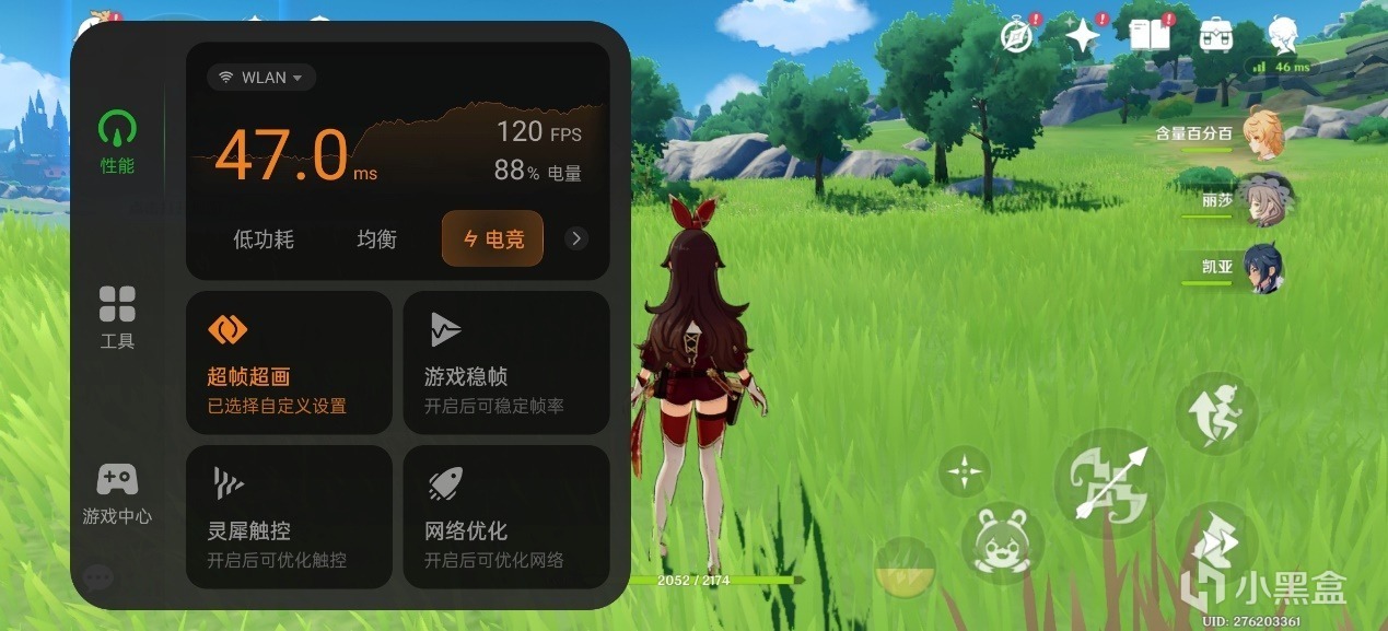 此外結合遊戲雲計算專網、HyperBoost遊戲穩幀引擎、超幀超畫、靈犀觸控等這些軟硬件層面的優化結合,讓一加 Ace 3 Pro進一步爲玩家提供了穩定、良好的遊戲體驗。遊戲超幀和隱藏的X模式確實有用,前者可以實現將手遊超幀到120 fps,包括《原神》;後者則是可以更大限度的壓榨CPU和GPU性能,進一步帶來性能方面的提升,前提就是需要搭配一加27W及以上瓦數的散熱背夾來觸發。另外在遊戲助手裏有個AI實驗室,裏面針對《原神》提供了自動拾物、自動解控和跑動鎖定這類小功能,降低了一些繁瑣無味的重複操作,對於《原神》玩家可以帶來操作體驗的提升。