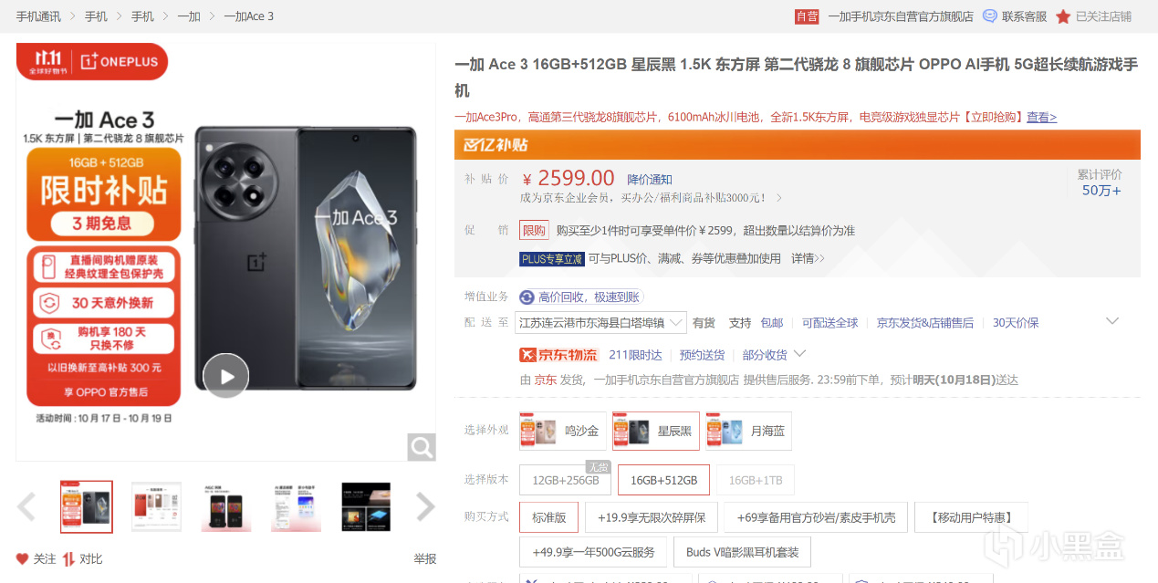 一加 Ace 3是這幾款手機中爲一款非Pro機型,也是唯一一款驍龍8 GEN2機型。推薦的理由就是硬件配置、性能以及補貼後的價格,目前16GB+512GB版的一加 Ace 3在各類優惠疊加後的價格直接來到了2599,而且支持30天價保,學生領券還能再優惠30元。
