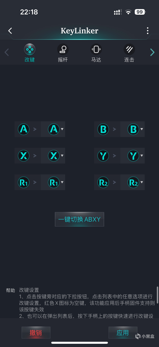除了Switch平臺外,J20騎士手柄也支持PC平臺,支持藍牙以及接收器連接,手柄的搖桿無線回報率爲125Hz。除此之外,手柄還支持APP連接,用APP對按鍵、搖桿、馬達、燈光等參數快速進行修改。