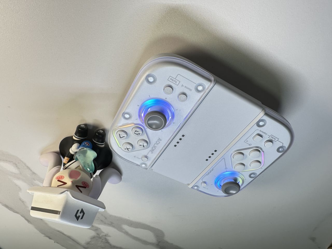 除此之外,J20騎士手柄的RGB燈光也是極其重要的進步,爲手柄增添了不少電競屬性(咋還需要電競屬性了?不過也挺好看的)。目前手柄支持三張燈光切換,不喜歡燈光的玩家也可以直接關閉。