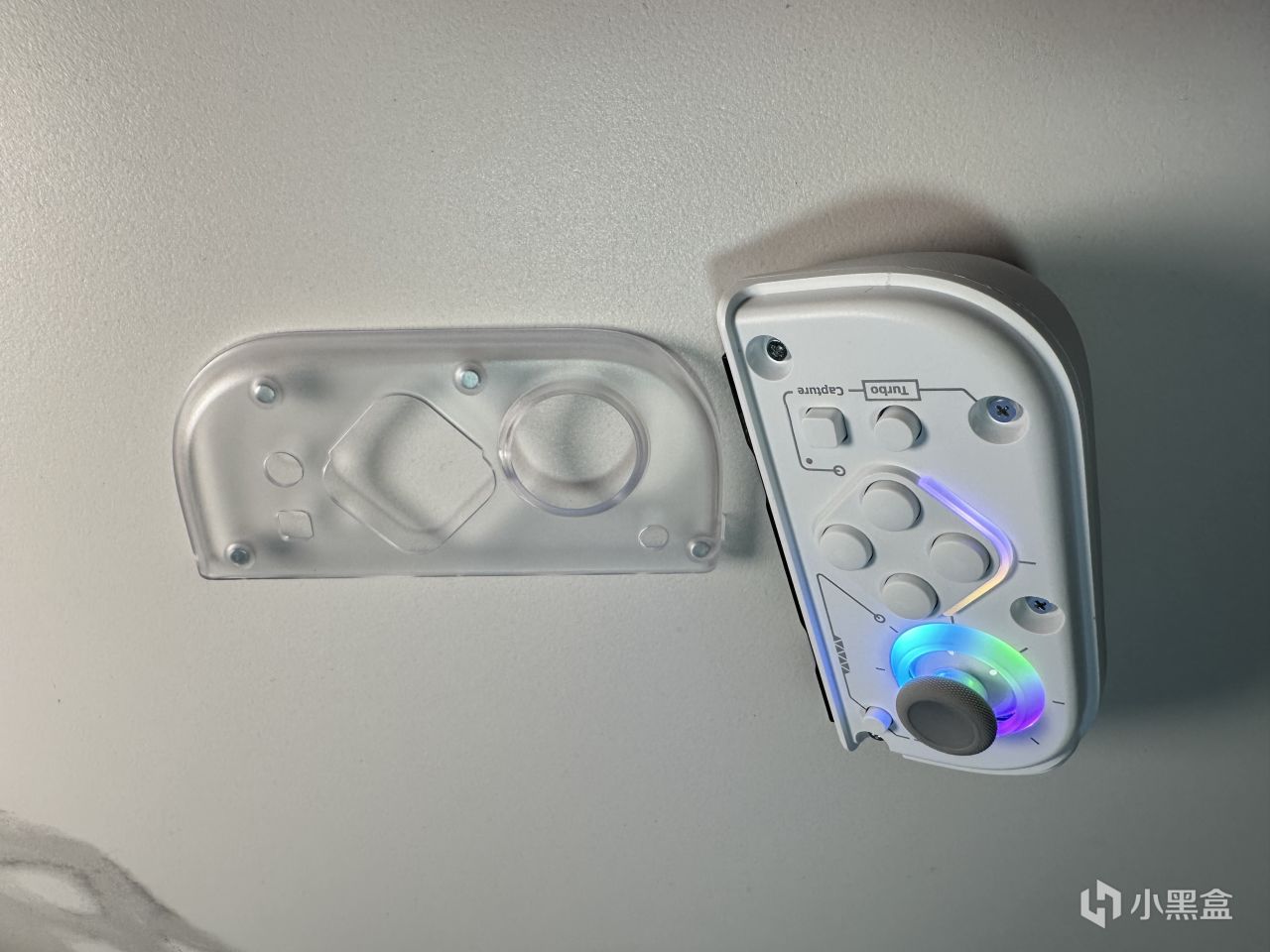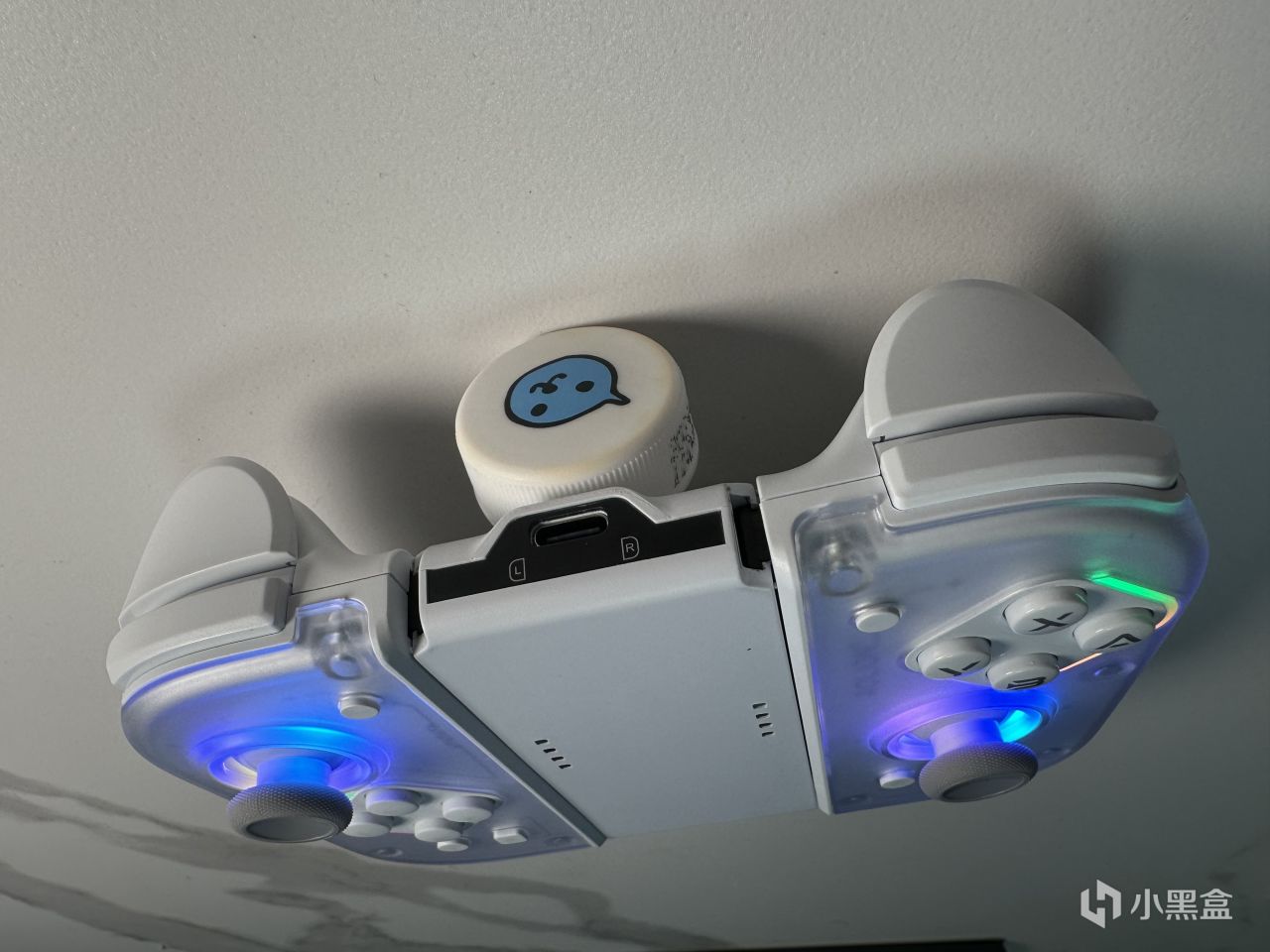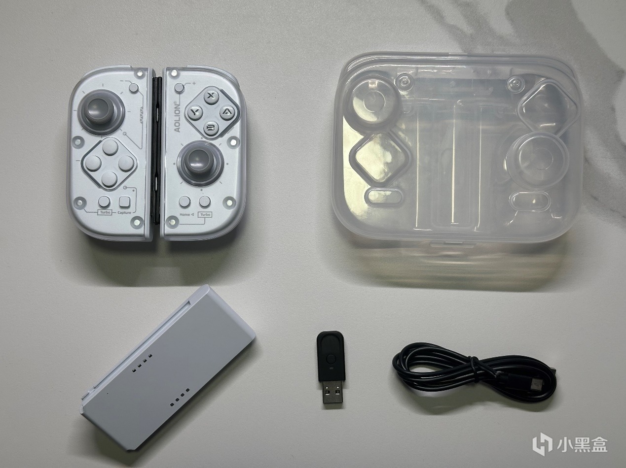 又到了激動人心的開箱環節,打開箱子就可以看到J20騎士手柄的真面目啦。相比於joy-con手柄,J20騎士手柄就顯得“臃腫”了一些,通體純白色的外觀頗有那種“白色顯胖黑色顯瘦”的意味。