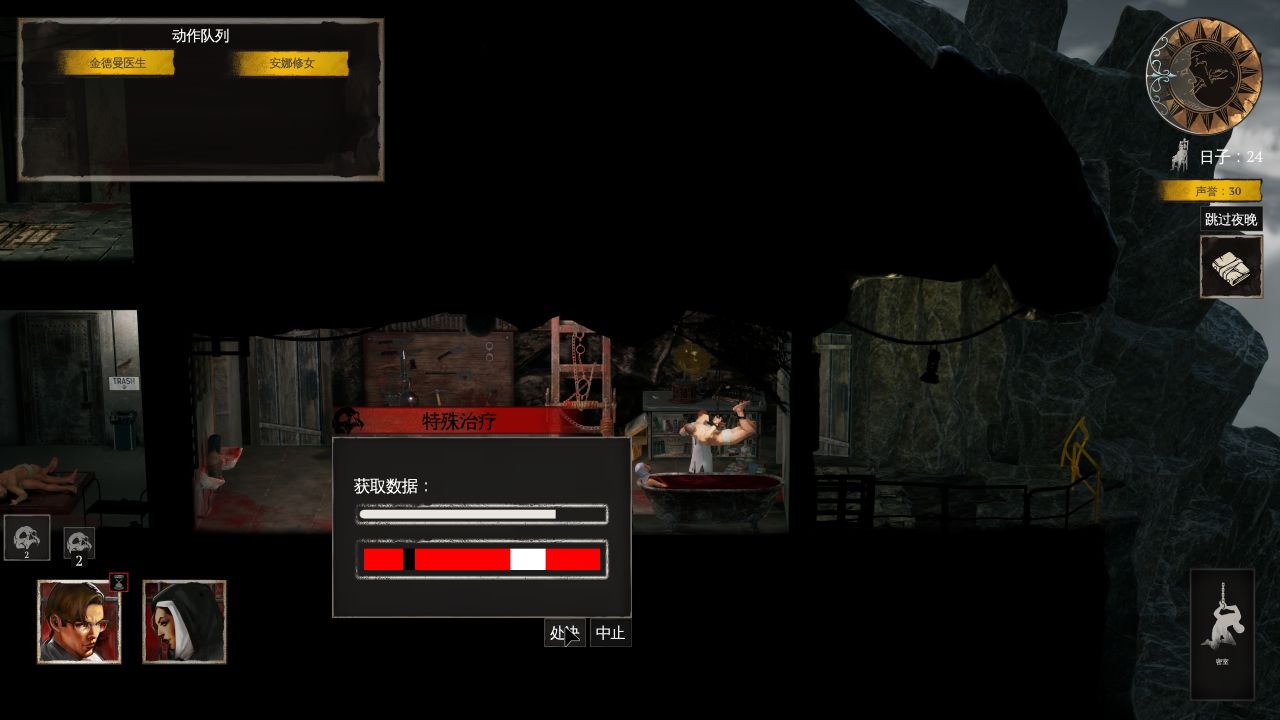 金德曼医生负责对白天被毒s的囚犯进行检查与抽取实验药剂、以及整个游戏我最喜欢也是最无聊却有画面感的玩法——特殊治疗(包含各种非r道行刑方式,但是和开电机一样读条点击蛮无聊的,看画面就行了,喜欢多看几遍就点错几次)