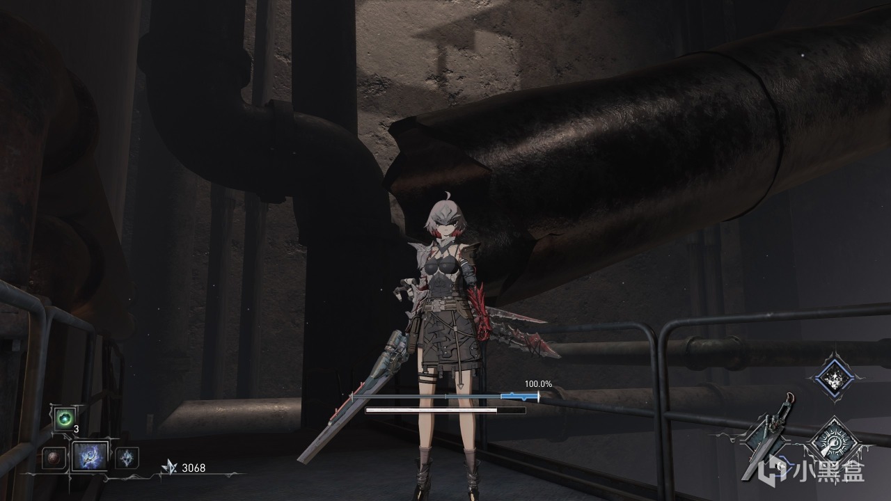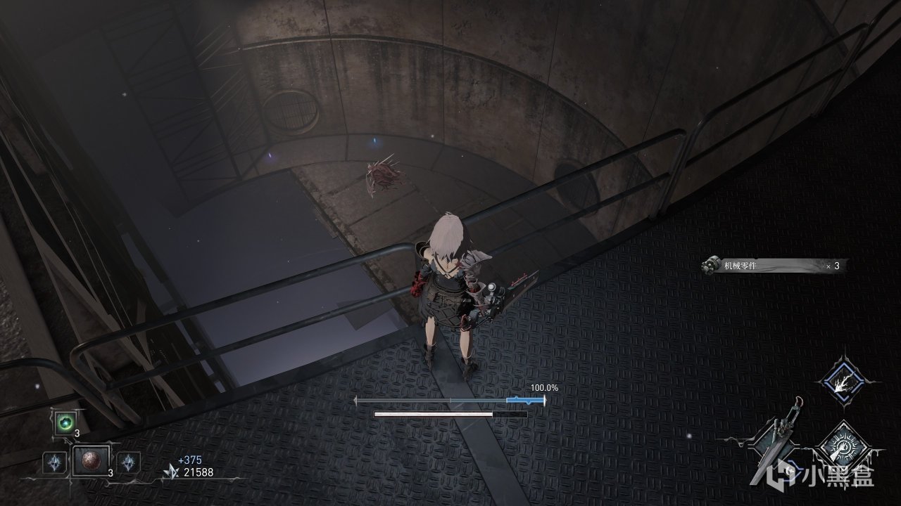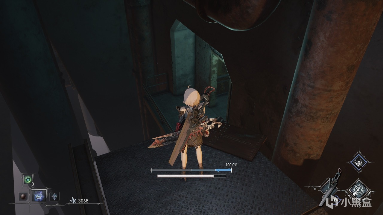 第一章还是设计了一个挺有意思的箱庭,比如眼前这个大机器人身后是隐藏区域:储水室,我们一眼可以看见下面有精英看守的宝物,但是没法直接下去,后续可以获得钥匙,然后共有三种方式进入这个秘密区域。