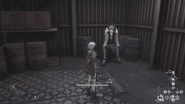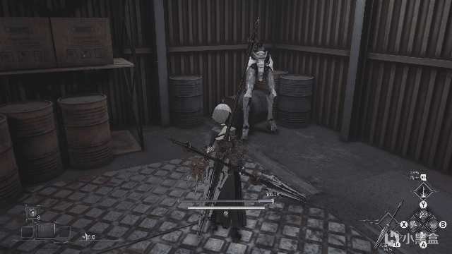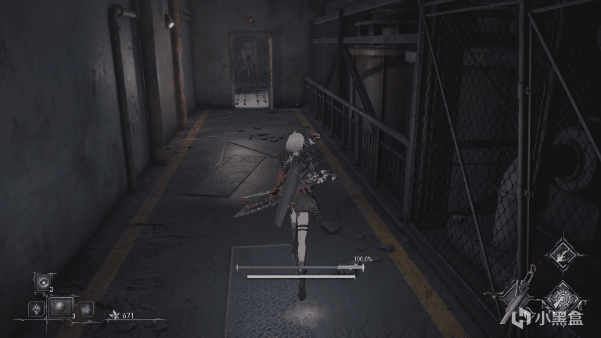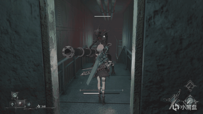 那么《无限机兵》作为“少女黑盒”和《嗜血代码》有什么不同呢?相对于《嗜血代码》是非常忠诚的照搬了《黑暗之魂》的基本玩法,《无限机兵》用了一种挨打减少、攻击可以增加的蓝条“同步率”——一种新的资源循环方式。