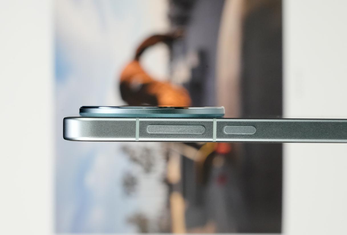 後殼整體採用磨砂質感的AG玻璃,並將青綠色與金屬色巧妙融合,讓機身在不同光照與角度下,呈現出截然不同的視覺觀感。