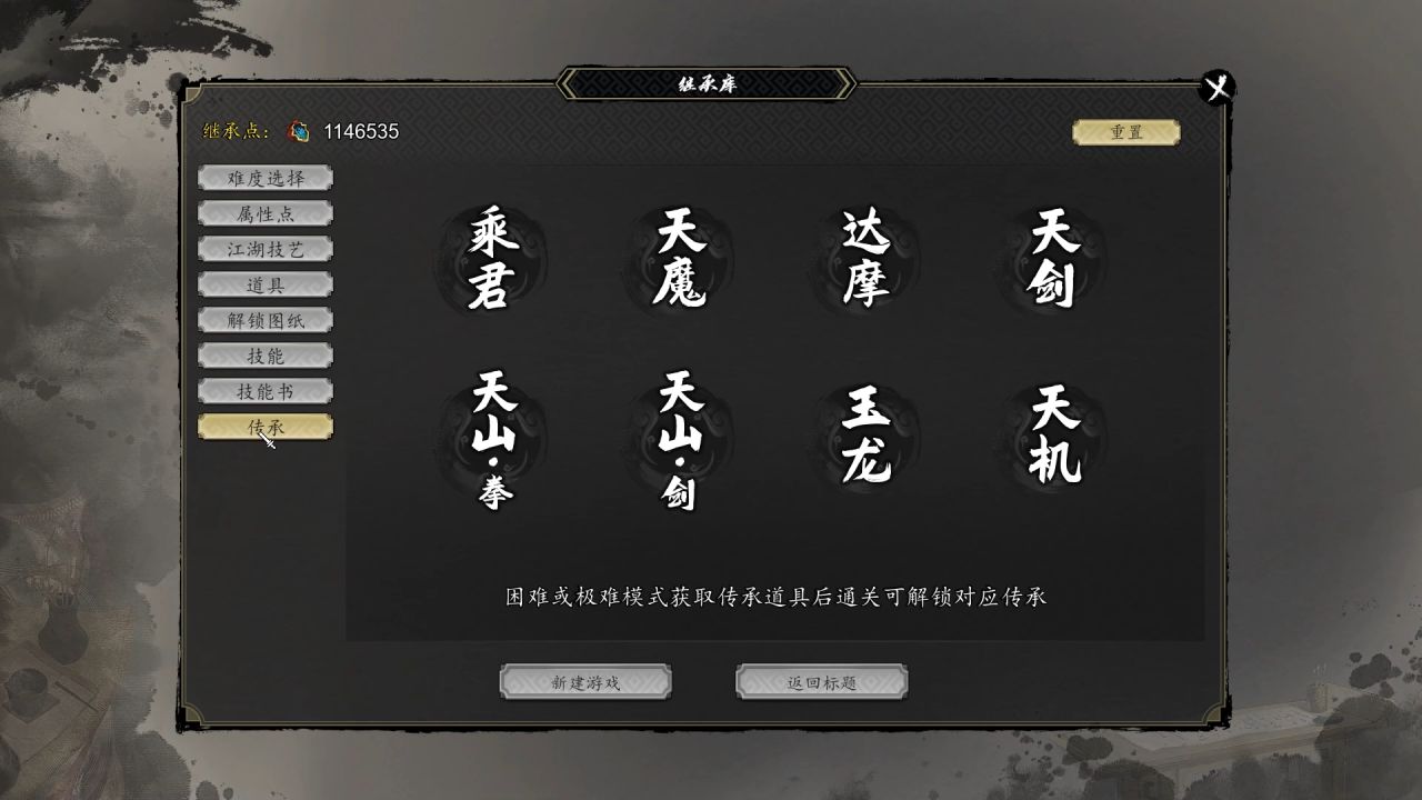 自定義難度選項和傳承選項