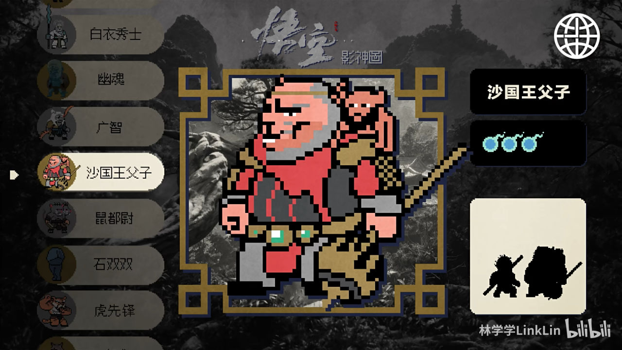 在《黑神話悟空》像素版第二章預告中,還出現了像素版的影神圖,可以看到第一章的白衣秀士、幽魂、廣智等,還有第二張的沙國王父子、石雙雙、虎先鋒等。