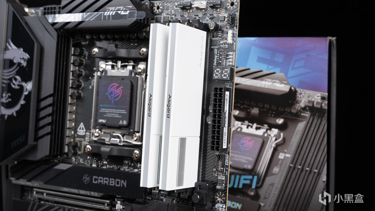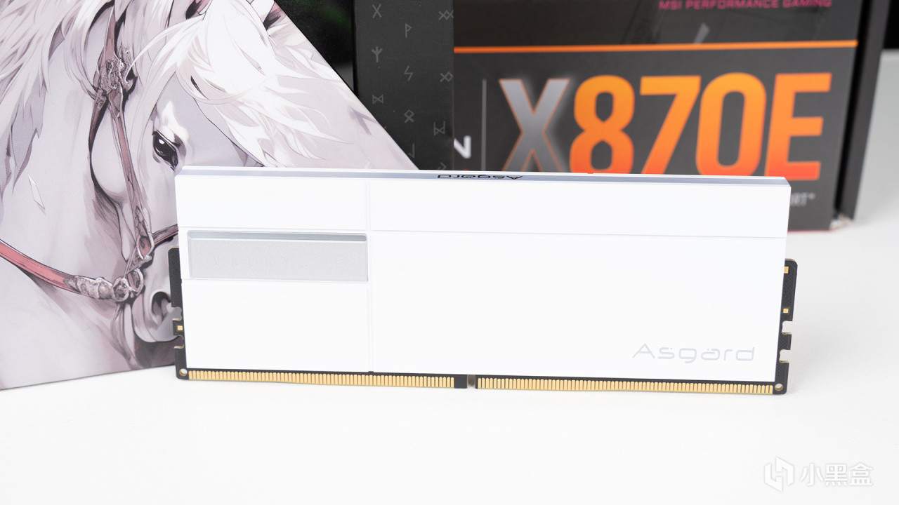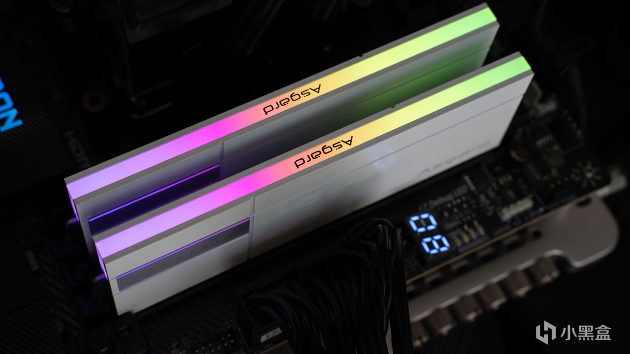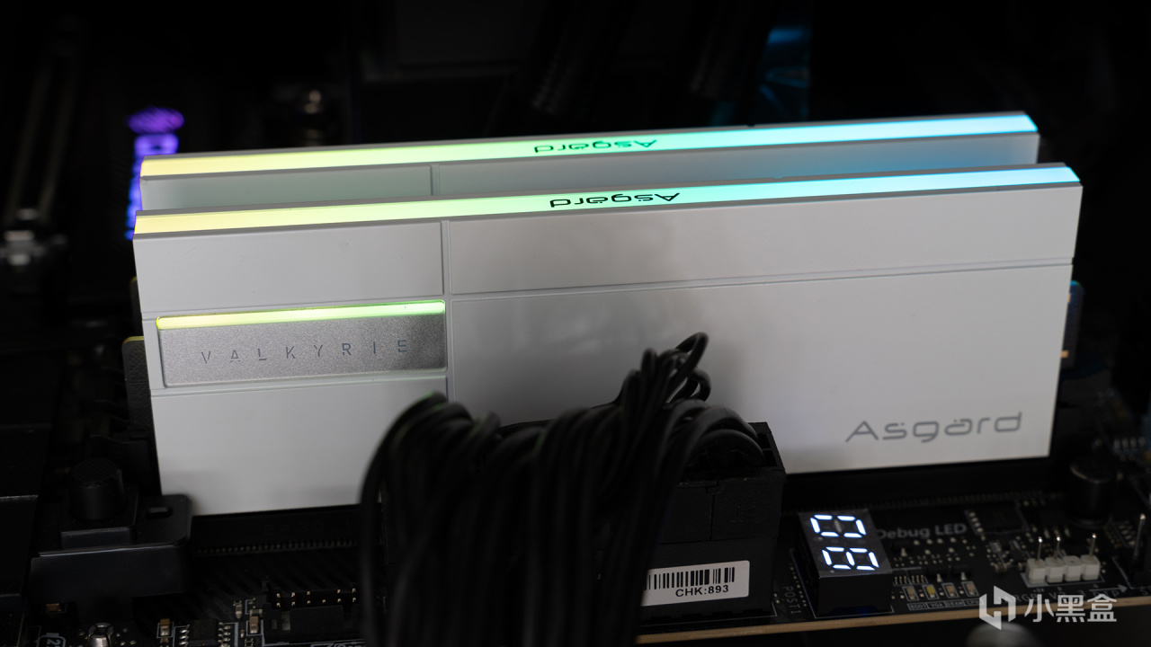瓦爾基里·女武神二代DDR5 6000C28主板實裝效果,頂部是帶Asgard LOGO的ARGB導光層,黑白配其實還不錯,沒有想象中那麼突兀。