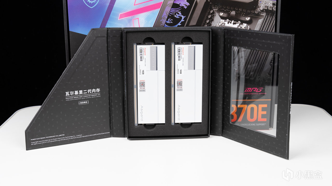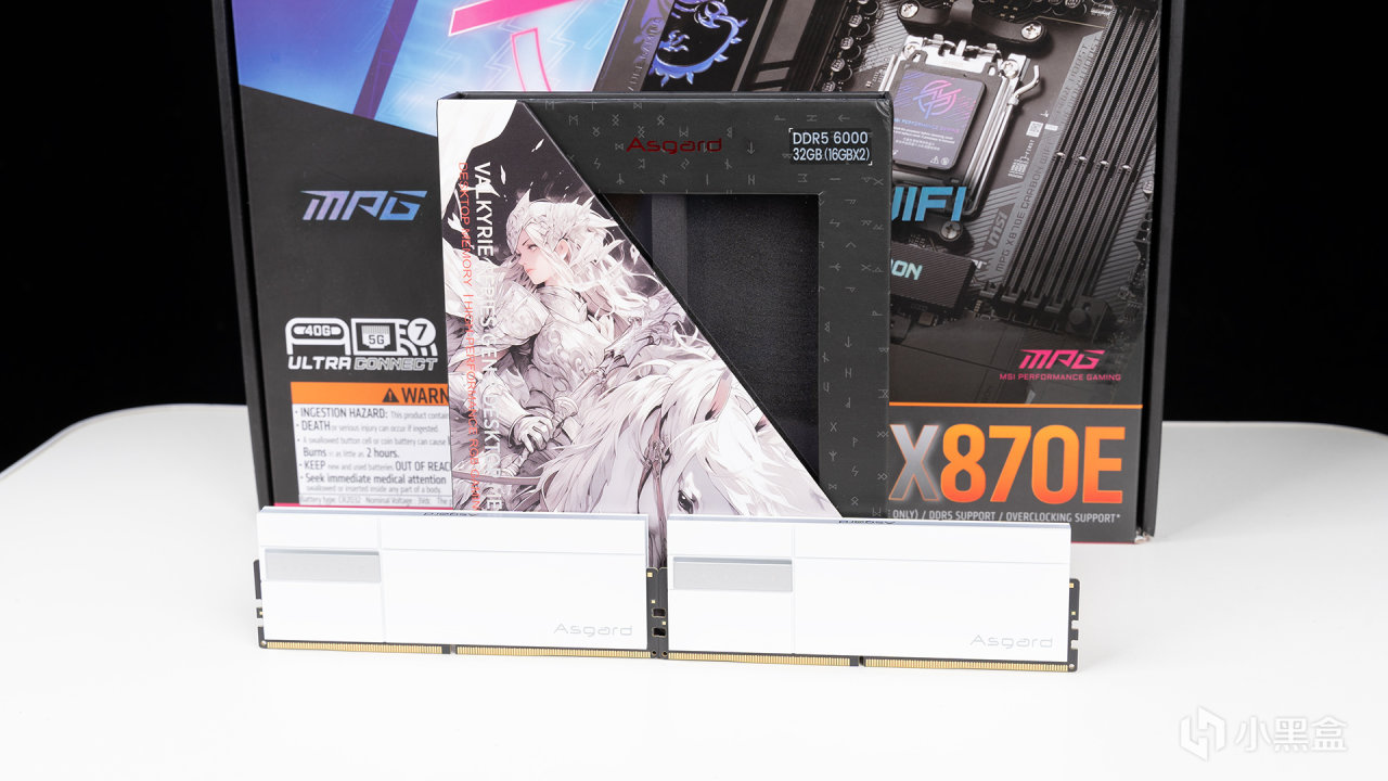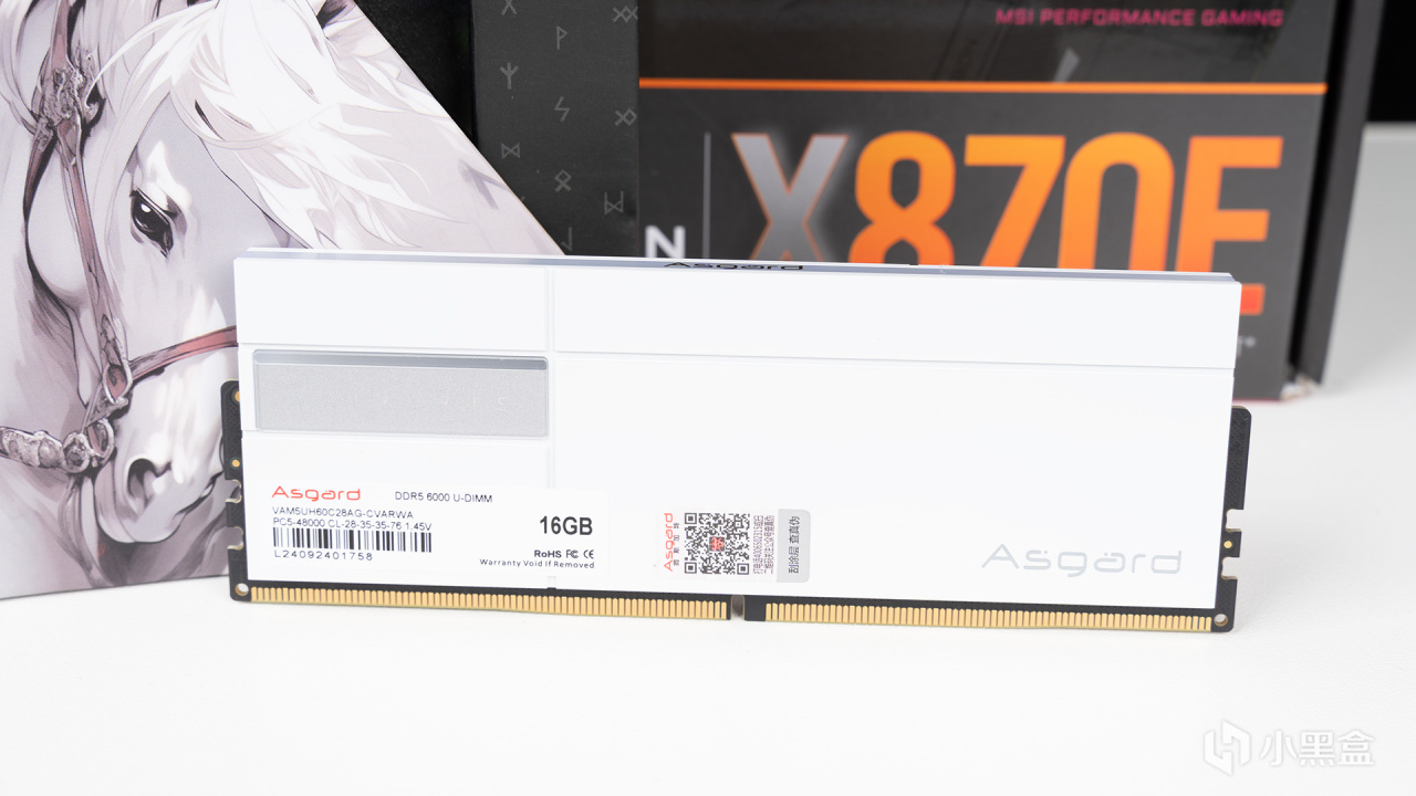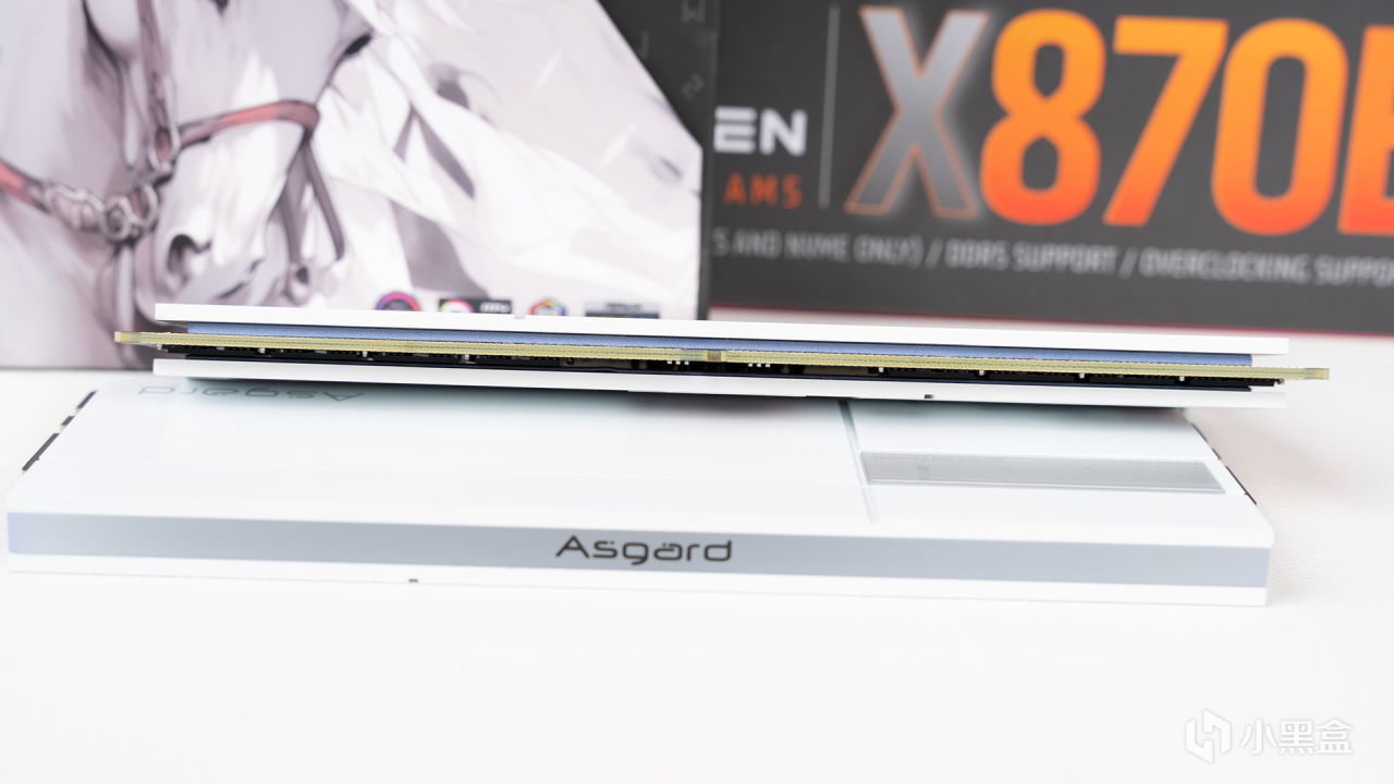 瓦爾基里·女武神二代DDR5 6000C28主板實裝效果,頂部是帶Asgard LOGO的ARGB導光層,黑白配其實還不錯,沒有想象中那麼突兀。