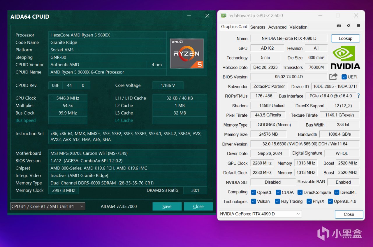 簡單過一遍測試平臺,處理器是銳龍5 9600X,設置開啓PBO AUTO,配合遊戲測試環節的顯卡是RTX 4090,可最大程度消除顯卡瓶頸,搭載搭載的是最新版本Windows 11 23H2操作系統以及NVIDIA 565.90 WHQL顯卡驅動,全程測試是開放式平臺,室溫大約在30℃左右。
